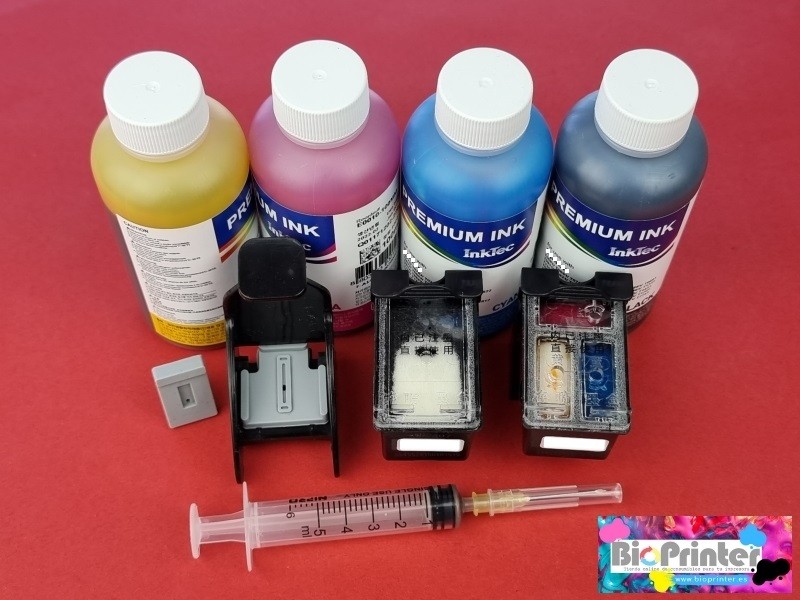 Cartuchos para HP 305 305XL con 400ml de tinta para rellenar. Negro, Cian, Magenta y Amarillo.