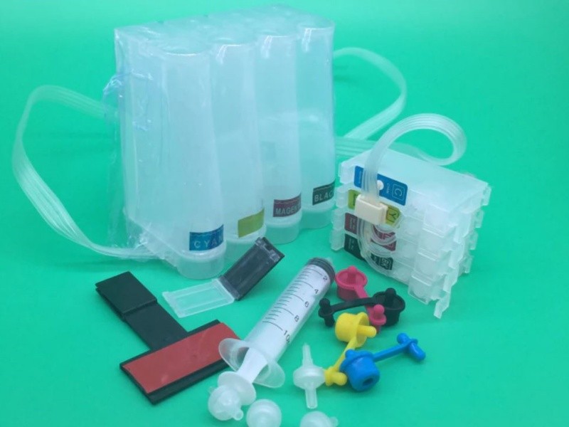 CISS – Sistema de alimentación continua de tinta sin chip compuesto por depósitos, manguera y cartuchos. Válido para gran variedad de impresoras Epson (mira bajo la lista de compatibilidad).
