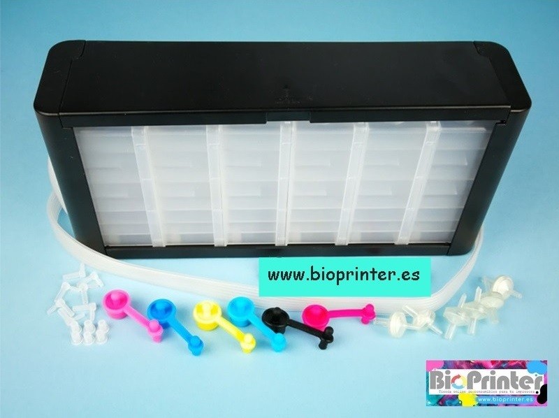 Estos depósitos se pueden utilizar para sustituir los tanques que llevan los CISS convencionales o para crear tu sistema continuo de tinta adaptándolos a tus cartuchos. Con 6 tanques y manguera de silicona de 6 tubos.