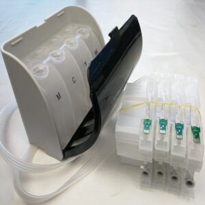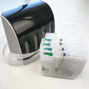 CISS o Sistema de suministro continuo de tinta para impresoras Brother que utilizan el modelo de cartucho LC3217 y LC3219. Los cartuchos incorporan un chip de un solo uso LC3219XL, los cuales deberán reiniciarse para su nuevo uso con el reseteador específico de este modelo una vez agotados, incluido en este kit.