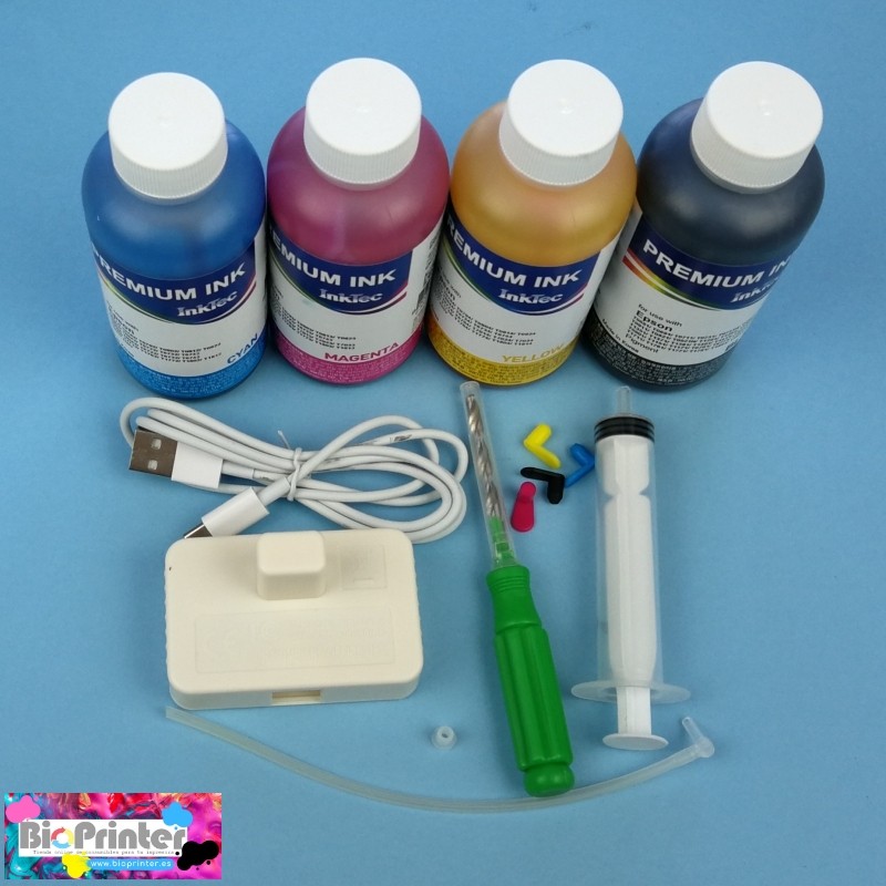 Conjunto de accesorios necesarios para la recarga de los cartuchos Epson 604, 604XL, 503, 503XL incluye reseteador del chip y 400ml de tinta.