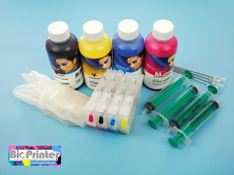 Pack 4 cartuchos recargables vacíos y autoreseteables BioPrinter con tinta de sublimación, compatibles con impresoras Brother que utilicen cartuchos LC223 LC225.