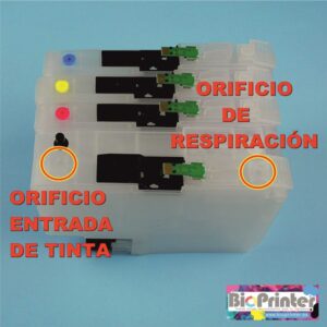 Pack 4 cartuchos recargables vacíos y reseteables BioPrinter (necesitan reseteador), compatibles con impresoras Brother que utilicen cartuchos LC3237 LC3239. Ideal para casa, estudiantes, oficinas, profesionales… utilizando nuestros cartuchos recargables reducirás notablemente los costes de impresión con la misma calidad.
