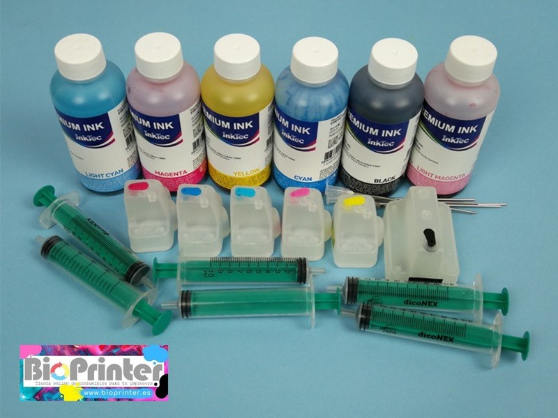 1 Pack 6 jeringas con agujas especiales para la recarga de tinta.